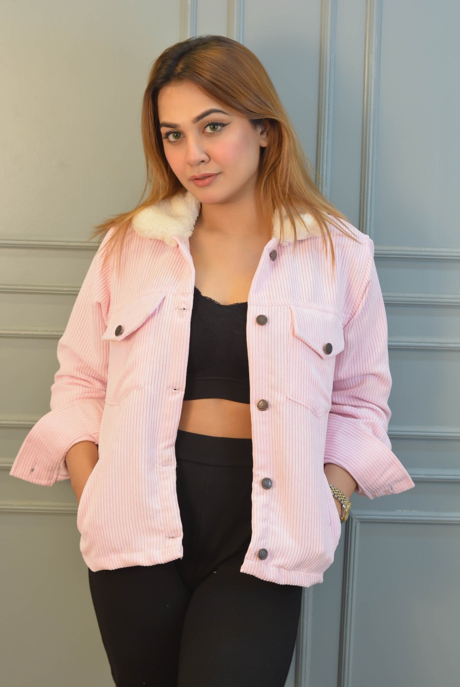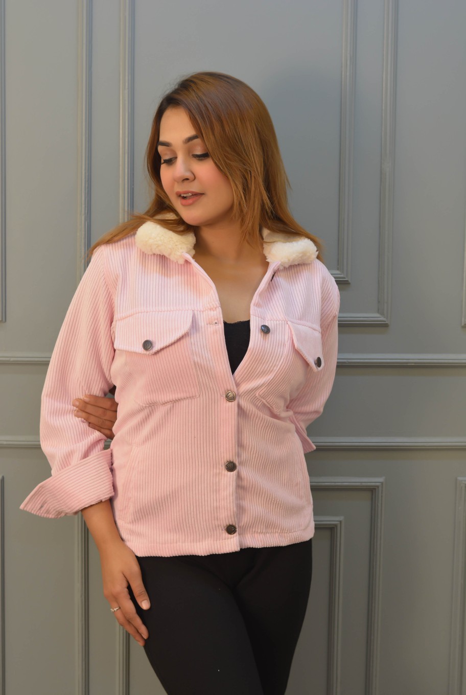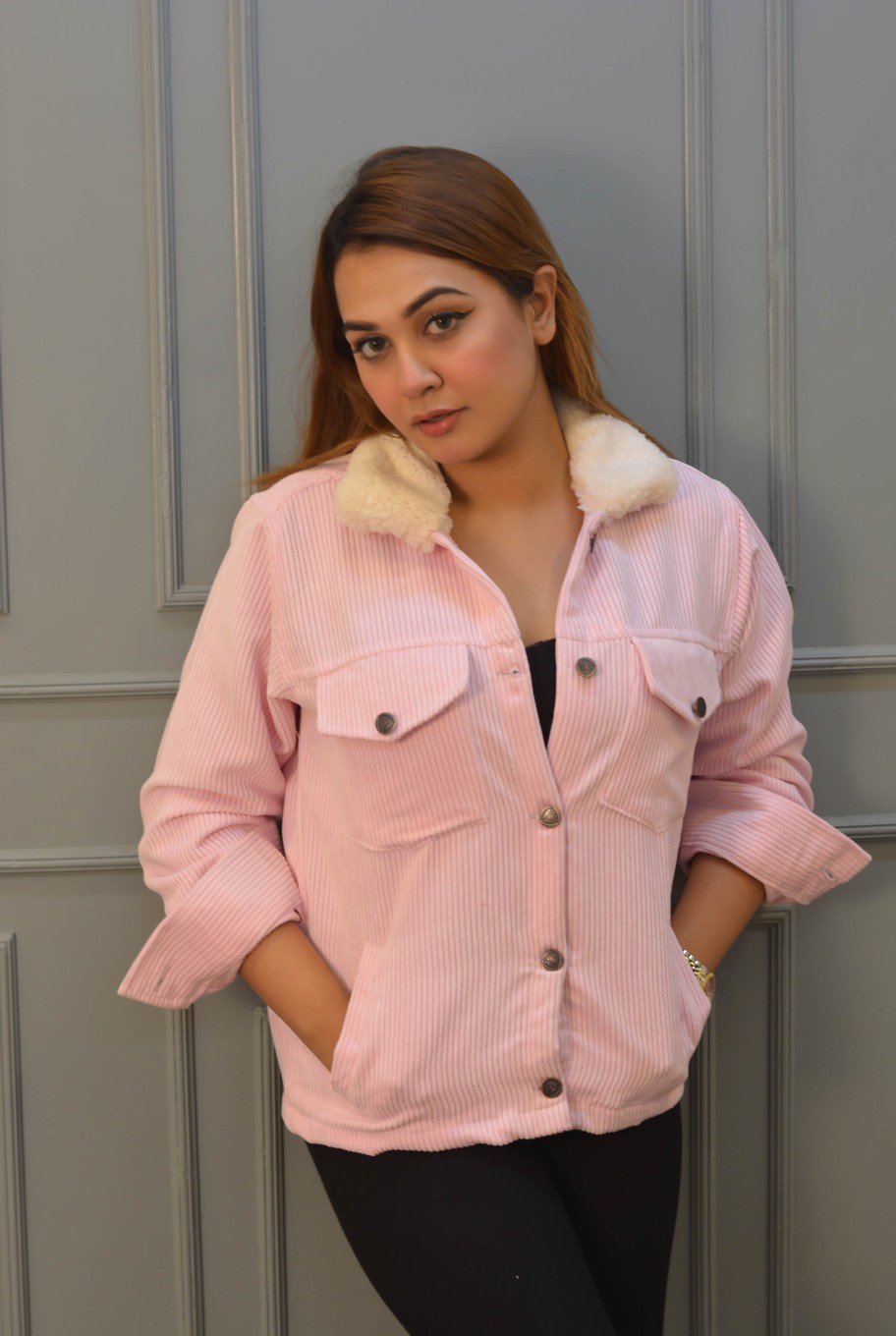 Be the main character all through winter with our soft Cord fabric jacket. The chic stylish design makes your fashion statement shine, all the while giving you comfort and confidence to be the best version of yourself.