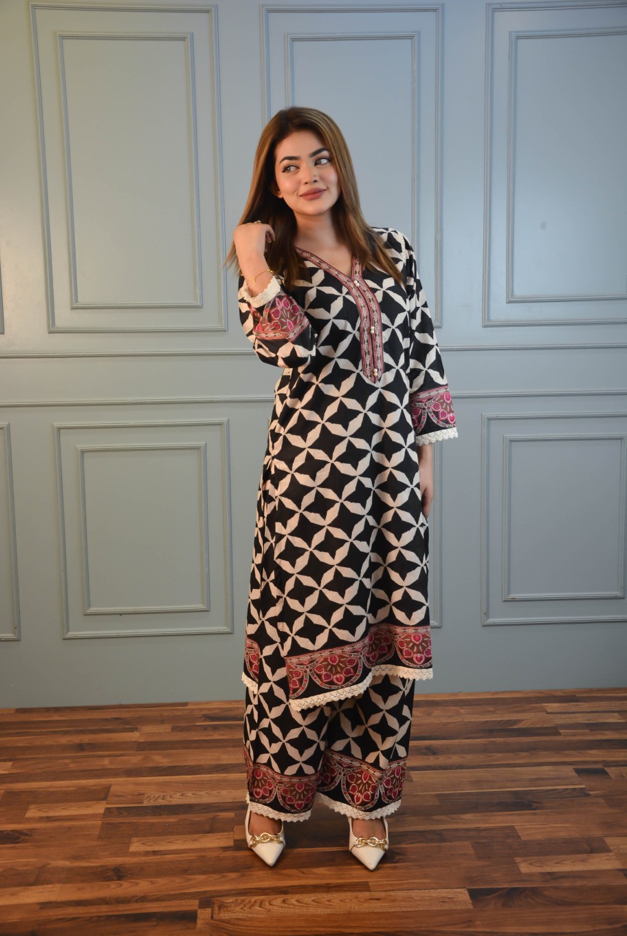 This black and white colour Co-ords set is perfect for our summer. It is very comfortable to wear and keeps you looking beautiful all day long.